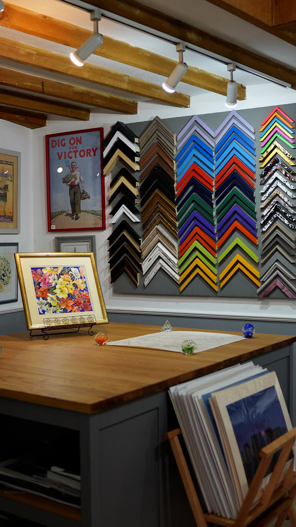 - Bespoke and Ready-Made Framing – From custom pieces to off-the-shelf frames, we offer a full framing shop service. We have over 200 styles of frames.
