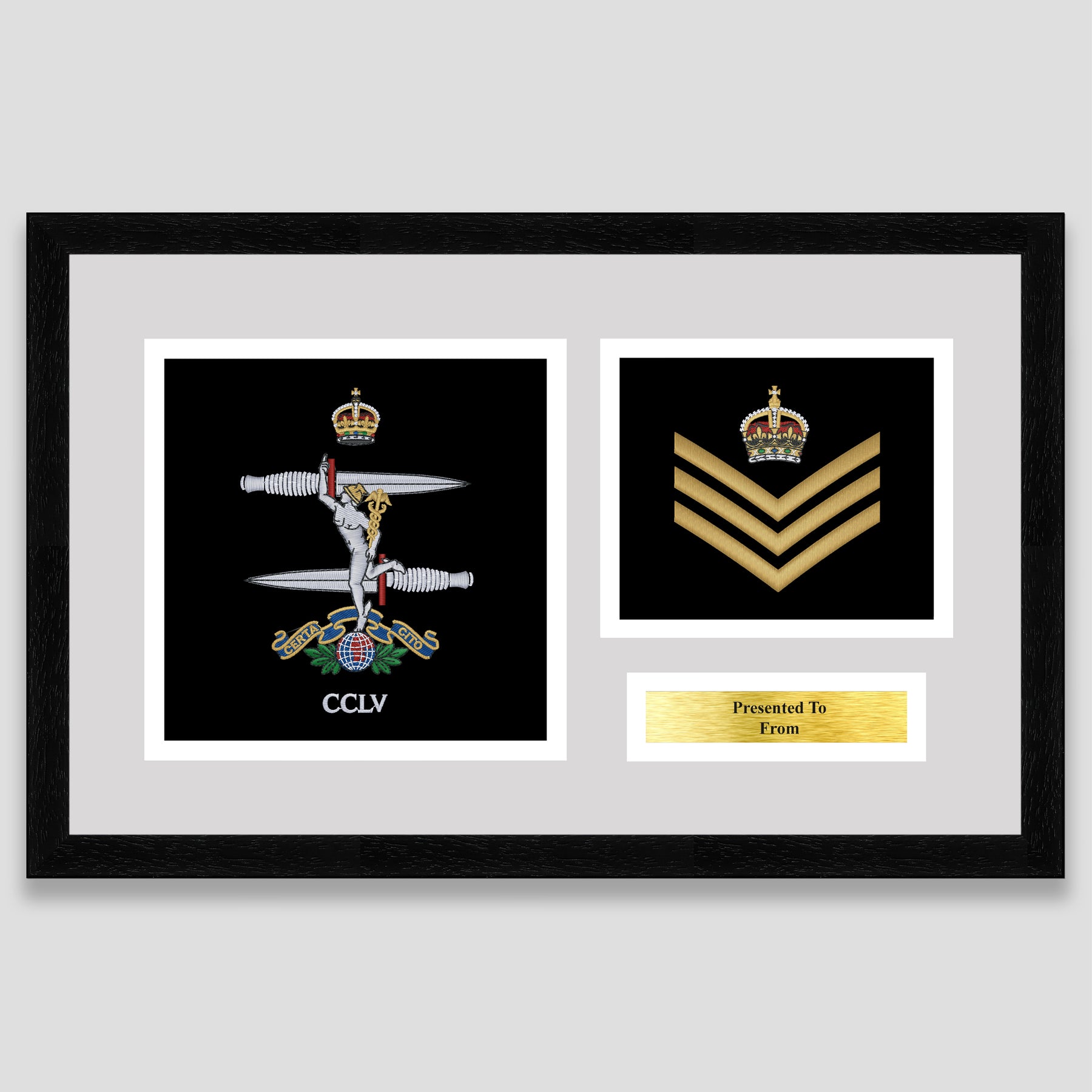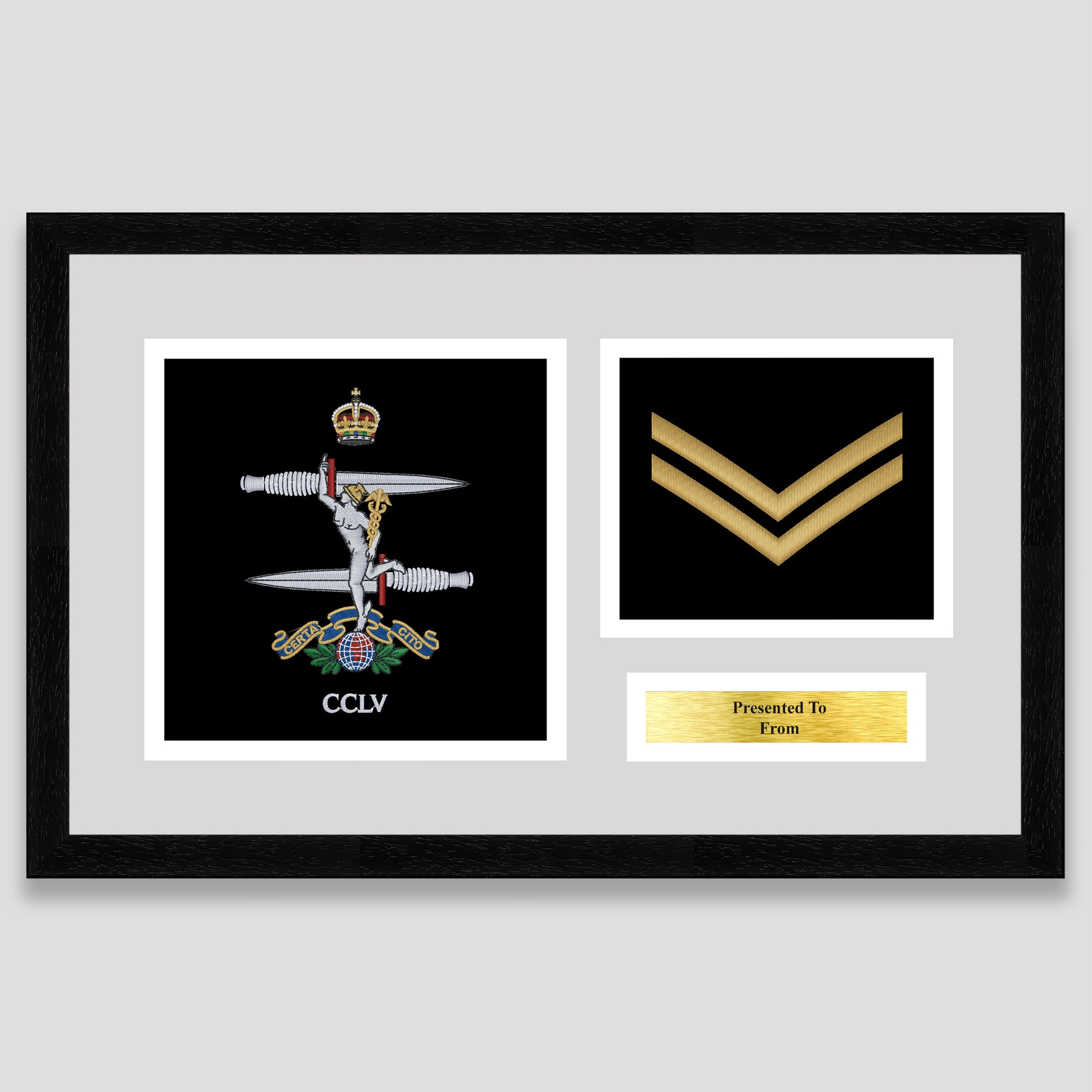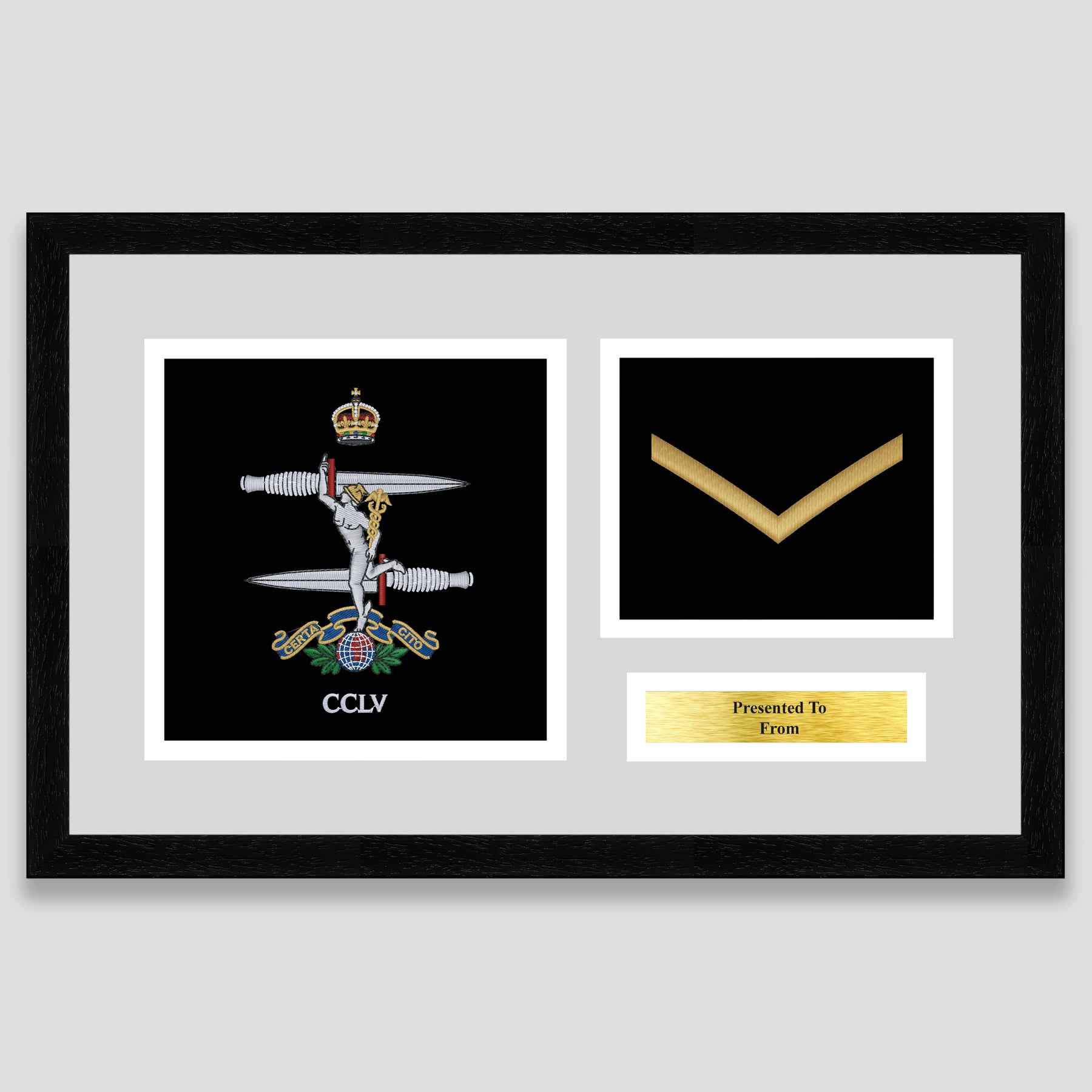 To finish, all our embroidery frames are double mounted to match regiment colours and includes a brass plaque with your own personal message.