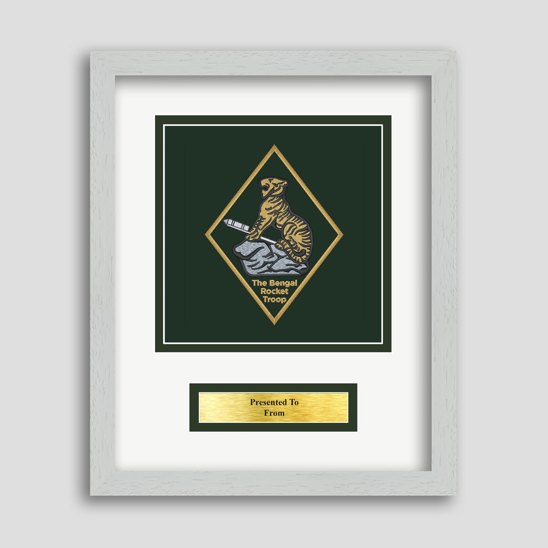 To finish, all our embroidery frames are double mounted to match regiment colours and include a brass plaque with your own personal message.